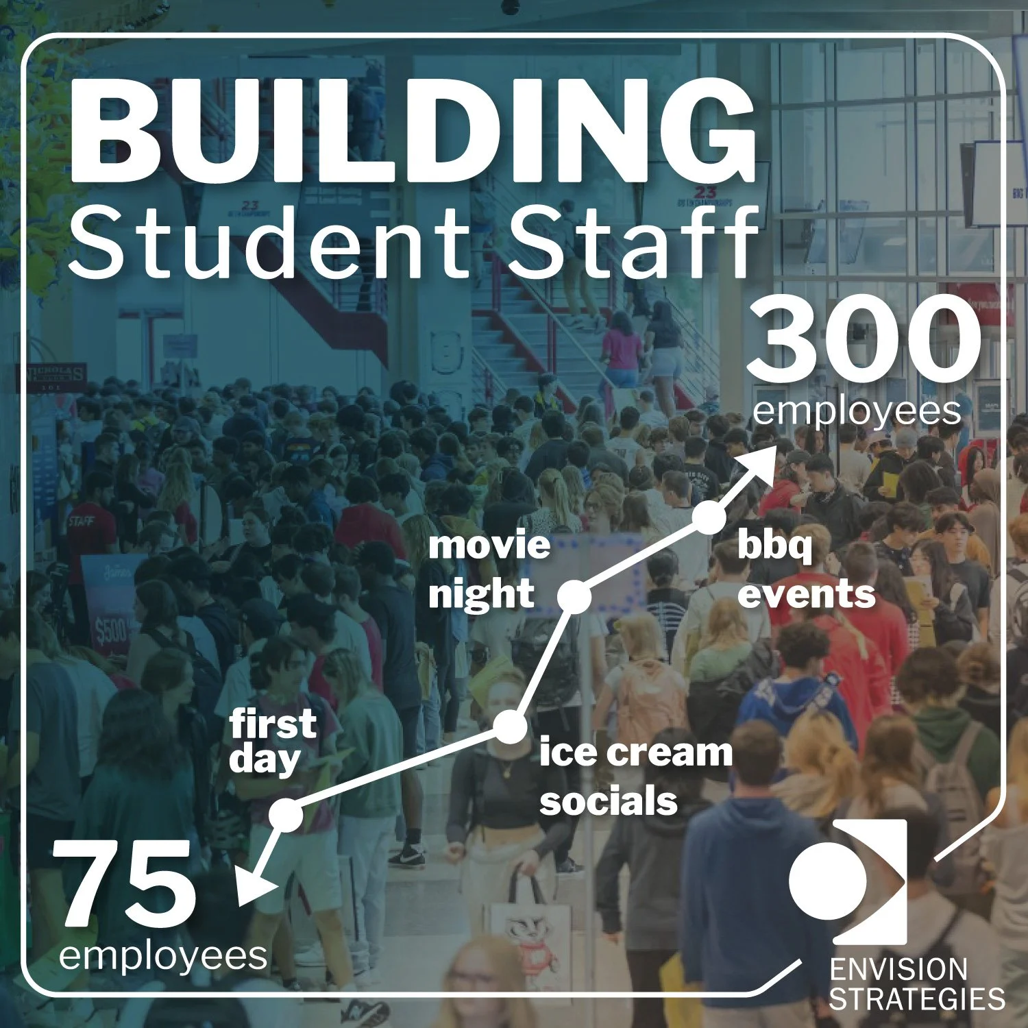 The program now focuses on “selling” their workplace, highlighting not just standard benefits but also emphasizing ancillary perks like cell phone discounts and rental car benefits. This extends to both full-time staff and student employees, with particular attention to creating positive first experiences. “We created a first day experience,” Testory shares. “Their first day, they do a lot of kind of the required trainings, to take that off the hands of the units. They’re busy providing meals. We give them tours, introduce them to everyone, really kind of work them into the program, into the team, and hopefully create a better first day instead of ‘here you are, here’s your new work area, now go make lunch.'”